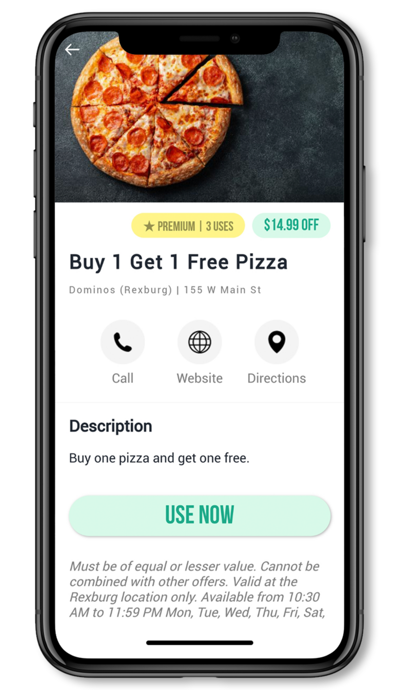 • Harris Pizza – Get $5 off any large pizza – usage 1