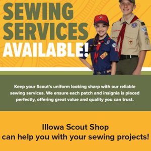Sewing Made Easy: From official uniform insignia to patches of all sizes, our in-store service will do it in no time! Ask a Scout Shop Associate for details.